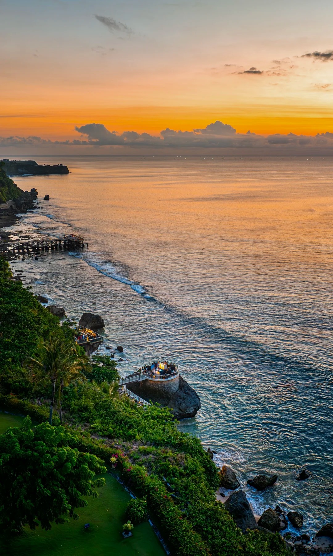 【金巴兰海滩】以其壮观的海上日落美景而闻名,曾被评为全救最美的十大日落之一,狭长的海滩似乎没有终点,面对着无尽的海鲜,脚踏软绵绵的沙,如漫步在天堂一般,每当夕阳西下,落日就像沉入大海一样,短暂却无比美妙和壮观,天色暗下行人如剪影,又是另一幅风景画。